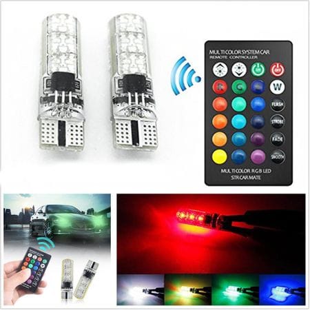 Set 2 becuri LED pozitie, bec T10 bulb RGB Multicolor, unghi iluminare 360 , telecomanda inclusa by Oferte Shop