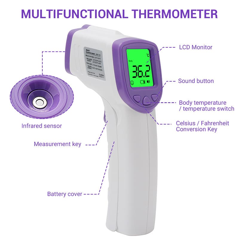 Termometru rapid digital non-contact, PO XI DUN MEI, alarma febra, cu infrarosu, frunte, adult, copil